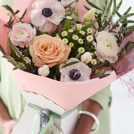 This handcrafted trending bouquet made by a local florist, will feature gorgeous blooms in soft shades, inspired by the spring dawn. Expect shades of peach, dusky pink, lemon and cream, plus dried flowers and foliage.